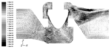 采用CFD軟件對閥內流場進行了仿真計算,同時給出流場壓力的輪廓圖和速度的矢量圖的可視化結果,便于流道的改進。