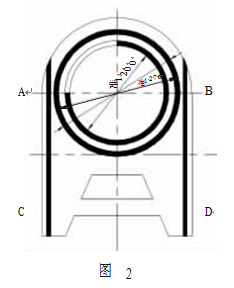 該閥體的閥座圈的外形尺寸較大,厚度 75.3mm,且中間圓孔較大,為準1200mm,總長度超過 2500mm,屬于典型的剛性較差、易變性工件。閥座圈基體材料為 ZG1Cr18Ni9Ti,環(huán)形密封面及導軌部位堆焊堆 802 硬質合金,如圖 2 所示(涂黑部分為堆焊合金處)。以前一般按照以下工藝進行加工:先粗車上平面及環(huán)形堆焊槽,刨導軌堆焊槽,堆焊,除應力熱處理,校平,精車上下平面及環(huán)形密封面,刨導軌。 按此工藝進行經(jīng)常存在以下問題:堆焊后,座圈變形嚴重,A、B 兩部分上翹,特別是導軌尾部 C、D 兩部分上翹尤為嚴重,雖經(jīng)多次校平,但 A、B、C、D 相對應座圈背面的部分,常常加工余量不足。且加工至成品后,座圈導軌外側堆焊合金厚度不足,有時甚至沒有合金;由于該閥用于催化裂化裝置,其流通介質為高溫、腐蝕性介質,由于合金的不足導致座圈性能大幅下降,嚴重影響其使用,閥門使用壽命縮短,甚至導致廢品的出現(xiàn)。