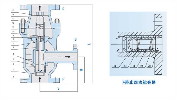 其它旁路尺寸可按要求制作;最大的旁路流量取決于最大的Kv值