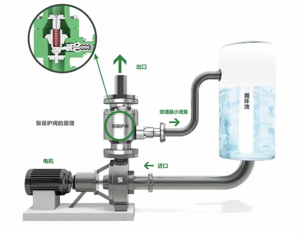 現代工業設備工藝過程中,要求離心泵基本上都是在變流量的狀態下工作,這就需要在工藝過程中有設置自動控制設備(離心泵保護閥)。然而離心泵在低于負荷運行時會出現過熱、嚴重噪聲、不穩定和氣蝕而引起泵的損壞。這是需要一種自動再循環設備,在泵低于負荷運行時,通過旁路實現泵最小流量回流循環。